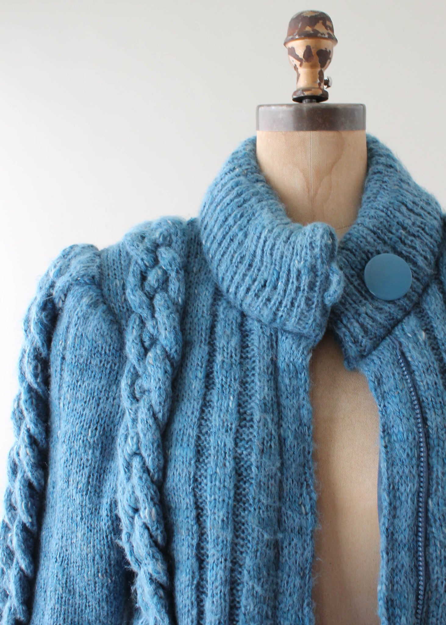 Vintage 1970s Cable Knit Sweater Coat Raleigh Vintage