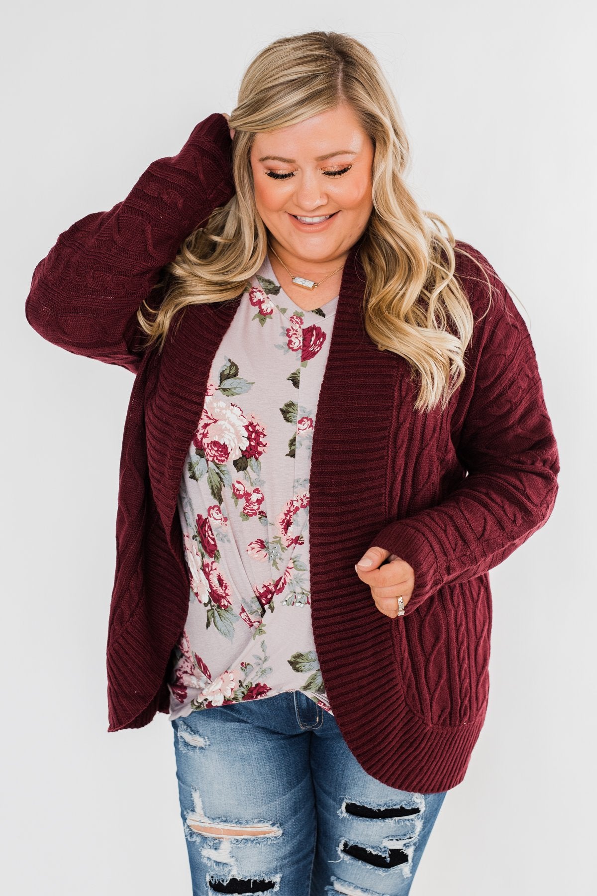 Noticing You Cable Knit Cardigan Burgundy The Pulse Boutique